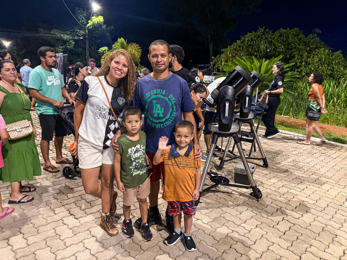 Guiomar Gonçalves levou familiares para acompanhar a atividadeChegar à Praça Jacques Demolay, na noite desta sexta-feira (20), e ver tantos pais com crianças pequenas já dizia muito sobre o clima do evento. Era fácil perceber que ali estavam meninos e meninas em fase de descoberta, curiosos, cheios de perguntas e com os olhos atentos ao céu.