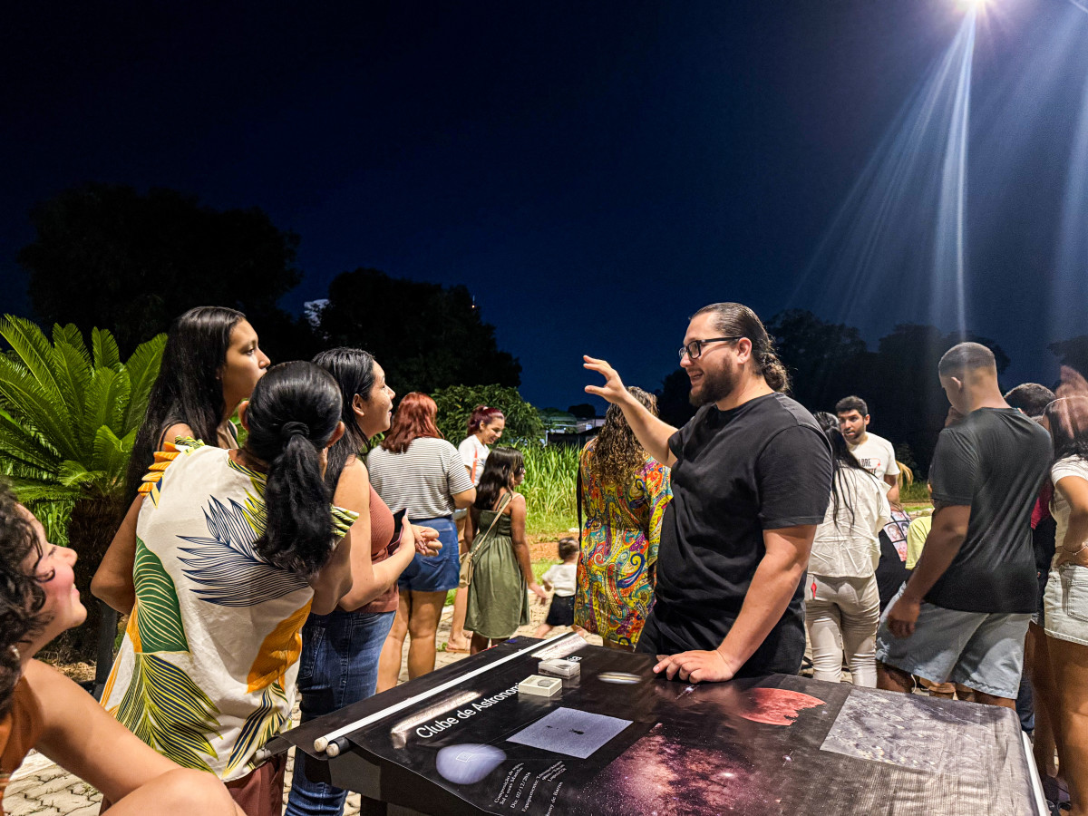 A empresária Luamar Barbosa soube do evento pela internet e decidiu levar o filho Leonardo, de 11 anos, fã de espaço e aviaçãoCom telescópios montados na praça e imagens de galáxias e planetas sendo apresentadas ao público, o Clube de Astronomia cumpriu o objetivo de tornar o conhecimento mais acessível. Maria Andrade, integrante e bolsista do projeto, explicou que a missão do grupo é levar a ciência para a sociedade de forma simples e gratuita. “A gente busca explicar com linguagem fácil, com elementos visuais, para que todos possam entender. O telescópio, por exemplo, não é um equipamento barato, então trazer isso para a praça permite que muitas pessoas tenham uma experiência que talvez nunca teriam”.