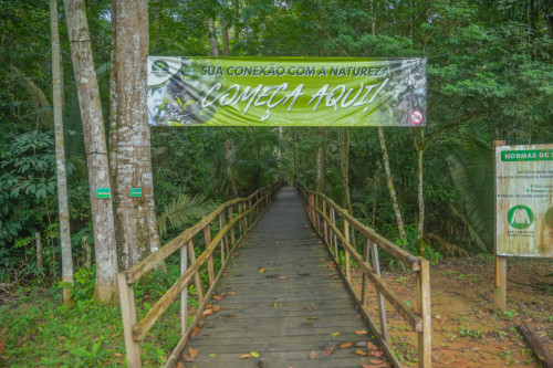 São mais de 500 metros de passarela suspensa dentro da mata fechada.