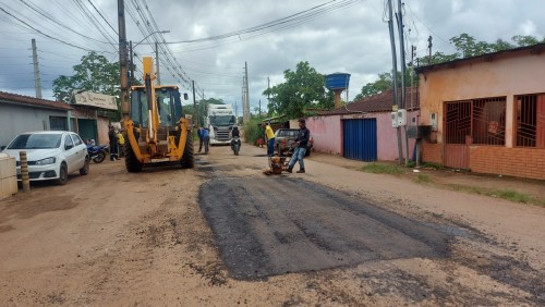 Importante acesso no bairro Nacional, via passa por serviços de recuperação asfáltica.