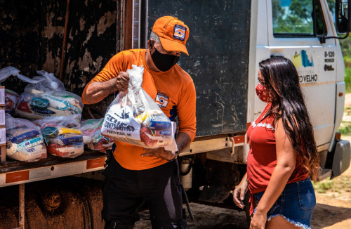 Equipe da Defesa Civil aproveita a ocasião para monitorar as localidades e prestar informações sobre a cheia do rio Madeira.
