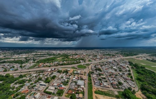 O aviso classificou a severidade do fenômeno como "perigo", indicando risco de ventos intensos, alagamentos e quedas de árvores.