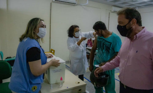 IMUNIZAÇÃO - Prefeito visita ponto de vacinação montado para vacinar profissionais da indústria